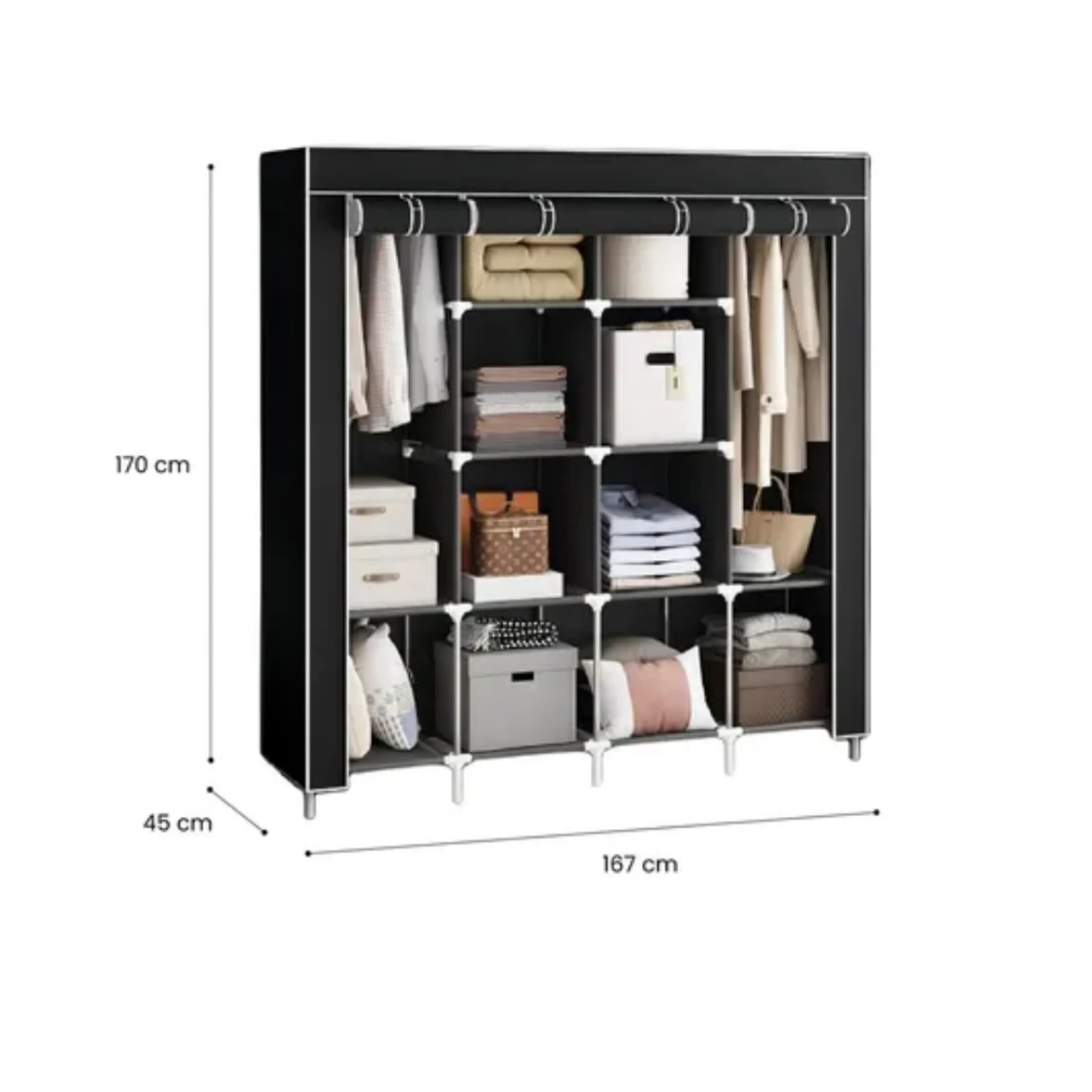 الأبعاد: ارتفاع 170 سم × عرض 167 سم × عمق 45 سم