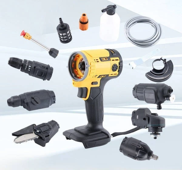 المواصفةالتفاصيلالجهد الكهربائي98V (فعليًا يكون 21V-24V ولكن يُسوّق على أنه 98V)عدد البطاريات2 بطاريات ليثيوم قابلة للشحنعدد الرؤوس6 رؤوس قابلة للتبديلمواد الصنعبلاستيك مقوى + معدنالاستخداممثقاب، فك وربط، قص، تنظيف، رش
