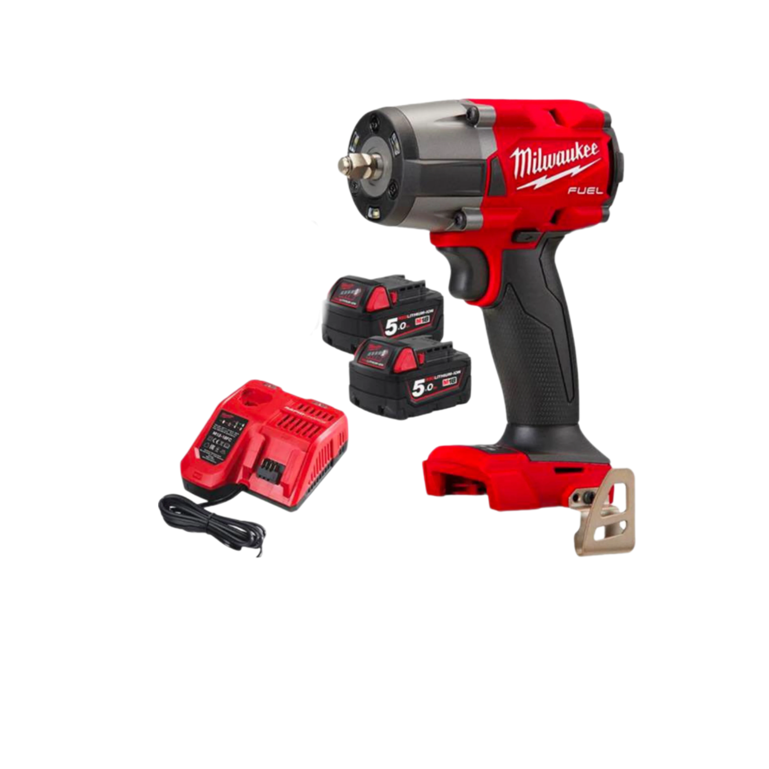 يتميز الجهاز بتصميم "ميلووكي" الأيقوني باللونين الأحمر والأسود مع رأس معدني شديد التحمل يضم مربع محرك بمقاس 1/2 بوصة مع حلقة احتكاك (Friction Ring). يشتمل الطقم على بطاريتين ليثيوم M18 REDLITHIUM™ 5.0Ah، وشاحن سريع متعدد الجهود، وحقيبة حمل صلبة (Hard Case). يحتوي الجهاز على لوحة تحكم رقمية في القاعدة لاختيار أوضاع السرعة والعزم، بالإضافة إلى إضاءة LED ثلاثية لتوضيح منطقة العمل.