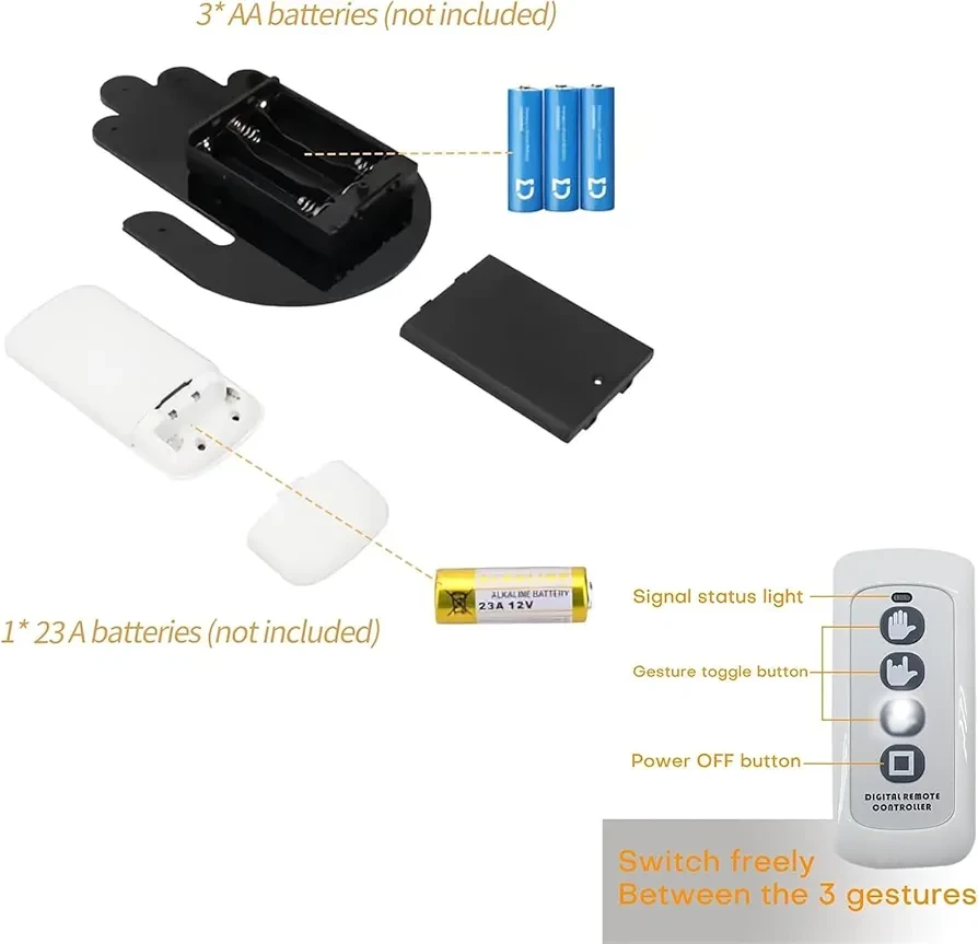 مصدر الطاقة: يعمل عادة ببطاريات (AA أو AAA) للجهاز، وبطارية صغيرة (CR2032) للريموت.