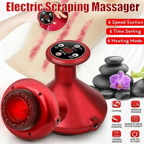 • يجمع بين الحجامة، التدليك، والعلاج الحراري في جهاز واحد