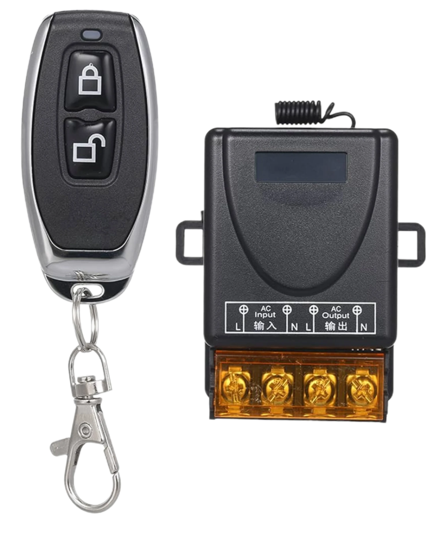 محتويات العبوة: وحدة تحكم مركزية + ريموت + فيوز حماية + أسلاك توصيل