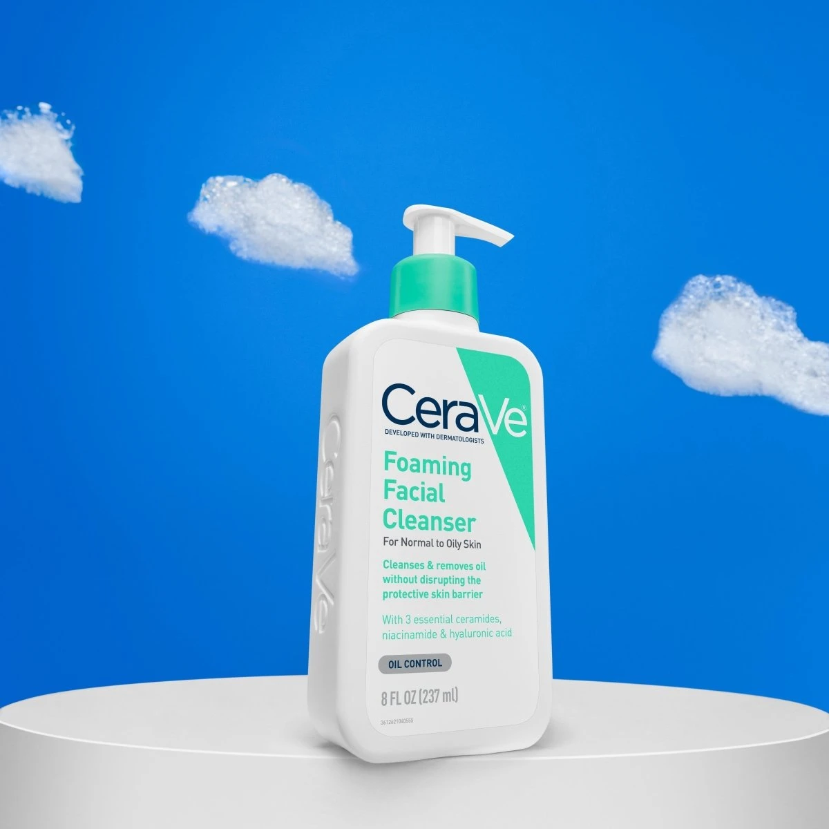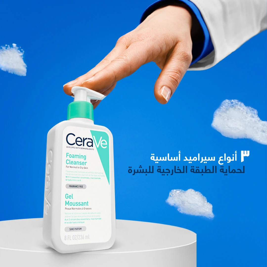 غسول CeraVe Foaming Cleanser يمنحك تنظيفًا فعالًا دون أن يخلّ بتوازن بشرتك. تركيبة أطباء الجلد المعتمدة تجمع بين السيراميدات، النياسيناميد، وحمض الهيالورونيك، لتنظيف يزيل الشوائب ويحافظ على الترطيب.