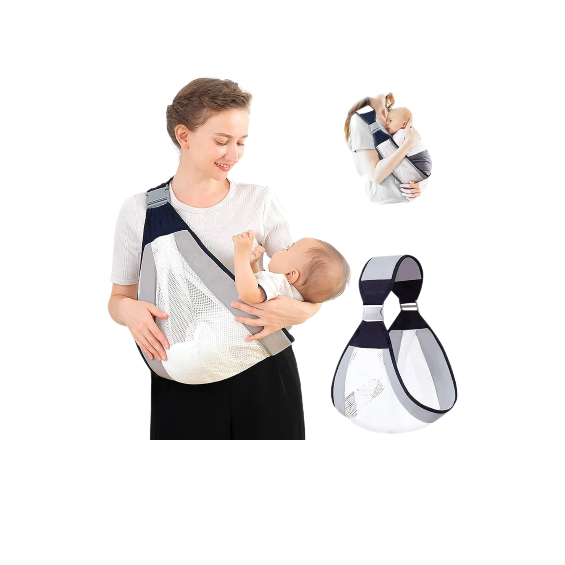 • الراحة: تأكد من أن الحمالة لا تضغط على رقبة الطفل وأنه يستطيع التنفس بسهولة.