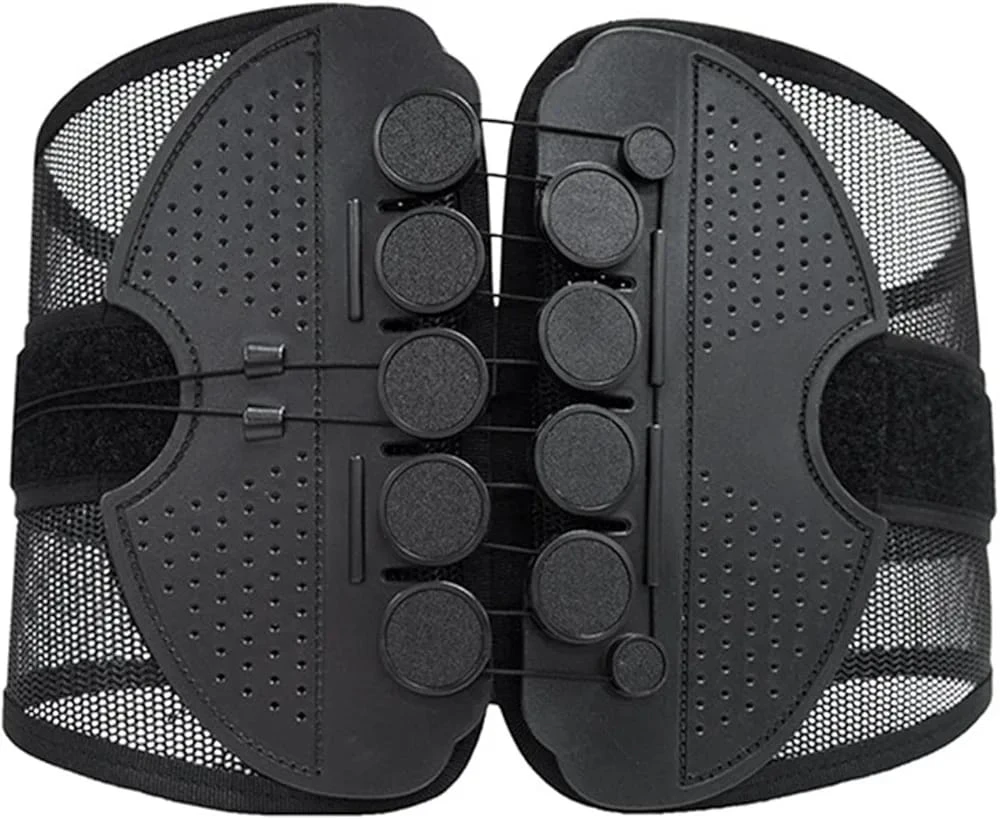 التصميم: هيكل مريح (Ergonomic Design) يحيط بمنطقة الخصر والفقرات القطنية بدقة لضمان ثبات الفقرات.
