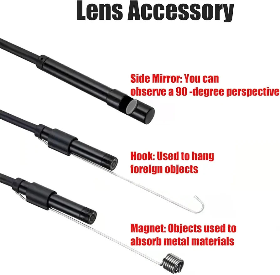🔎 كاميرا مخصصة للأماكن الضيقة مثل الأنابيب، المحركات، فتحات التكييف، وأسفل الأثاث.