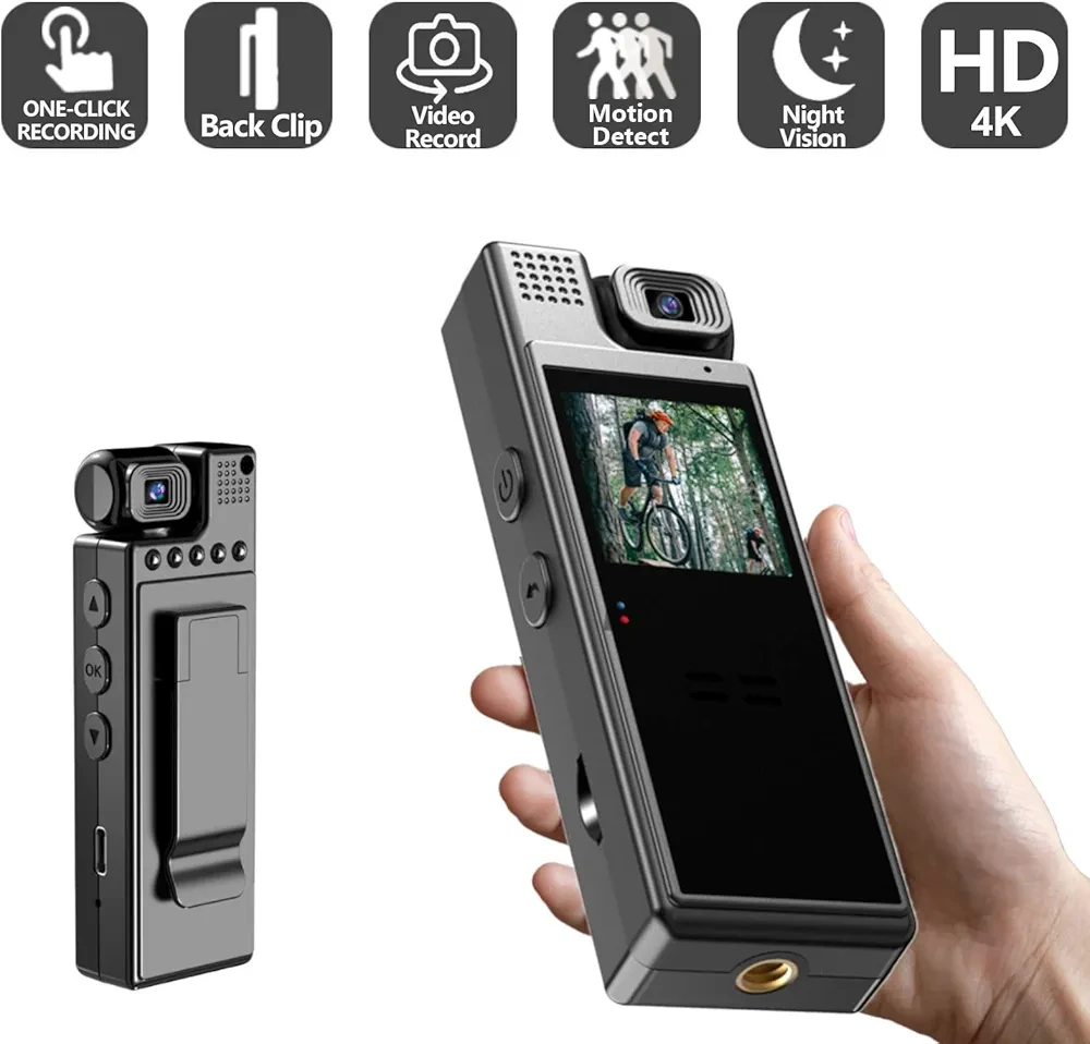 تصميم مدمج بزوایة متغيرة: تتميز برأس كاميرا قابل للدوران (غالباً 180 درجة)، مما يسمح بالتصوير من زوايا مختلفة بينما يظل الجهاز مثبتاً.