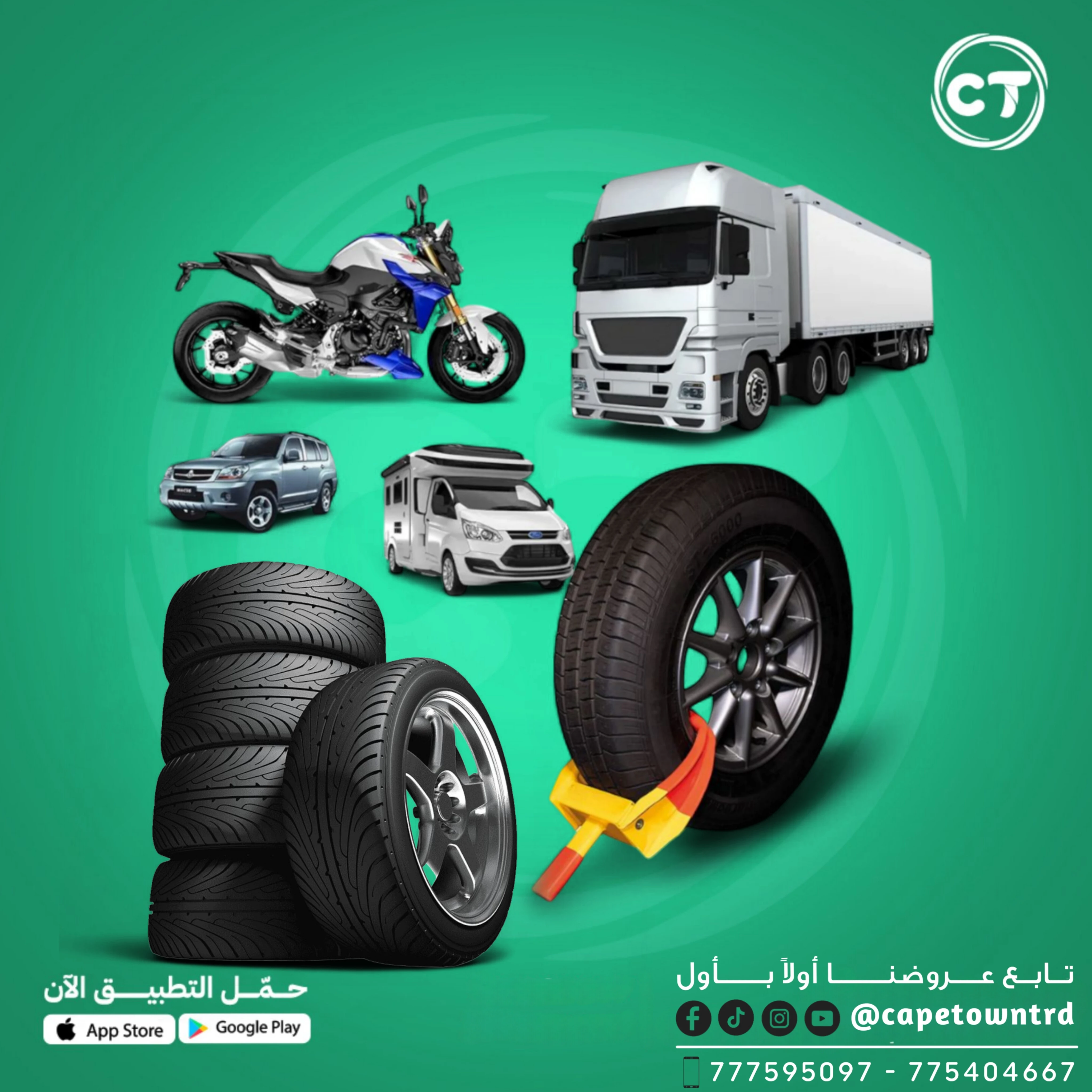 متعدد المقاسات: تصميمه القابل للتعديل يجعله مناسباً لمعظم الإطارات (سيارات – شاحنات – دراجات نارية – مقطورات).