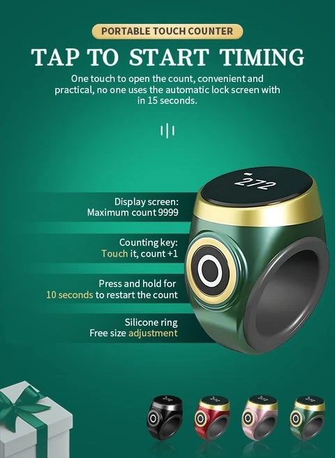 • الشاشة: رقمية لعرض عدد التسبيحات (كما يظهر الرقم "272" في الصورة).