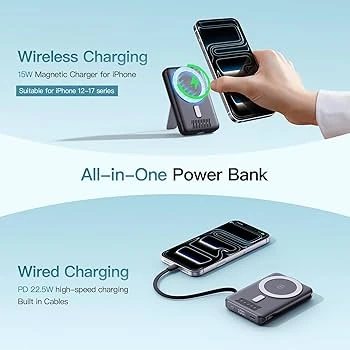 ⚡ شحن لاسلكي مغناطيسي (متوافق مع الأجهزة الداعمة لـ Qi).