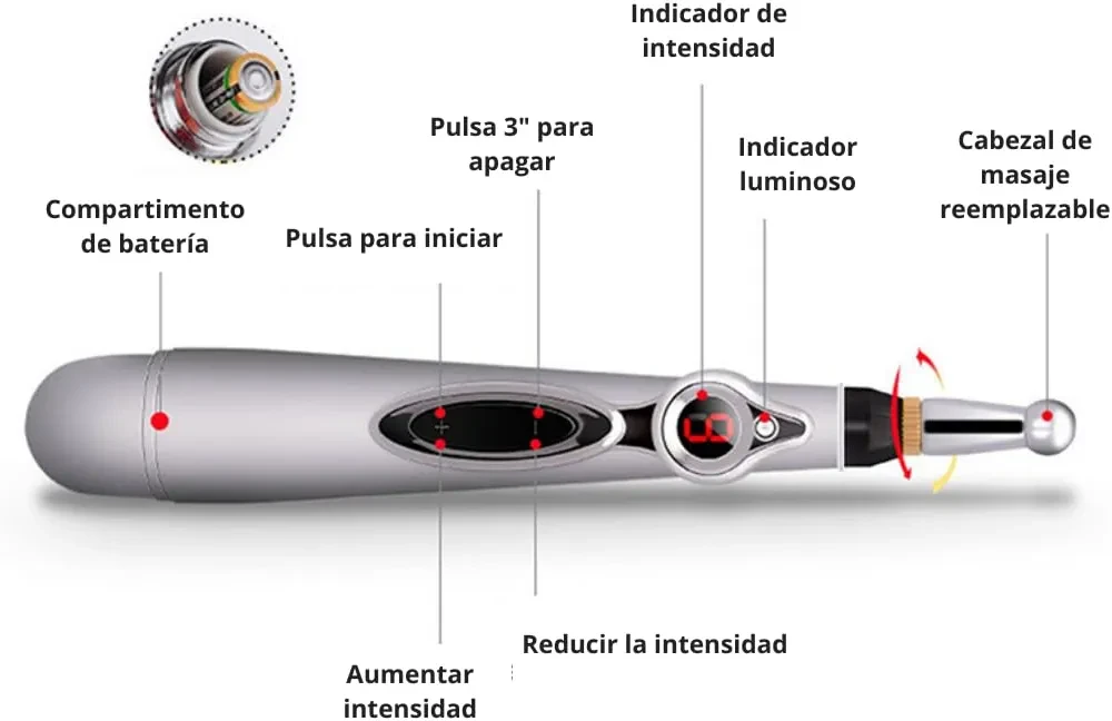 علاج بدون إبر: يوفر فوائد الوخز بالإبر التقليدي دون اختراق الجلد، مما يجعله آمناً للاستخدام المنزلي.