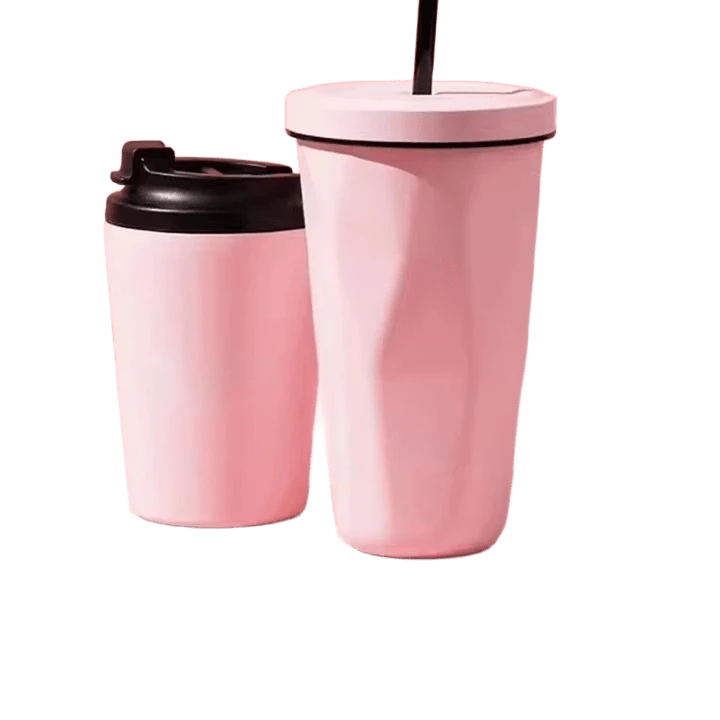 النوع: متوفر بتصميمين (كوب قصير بغطاء قلاب للمشروبات الساخنة، وكوب طويل مع مصاص للمشروبات الباردة).