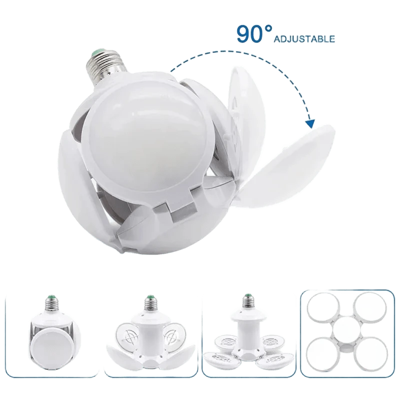 تصميم مبتكر قابل للتوجيه: يمكنك التحكم في توزيع الإضاءة بسهولة. اترك الأذرع منفرجة للحصول على إضاءة شاملة 360 درجة، أو قم بتوجيهها للأسفل لتركيز الضوء الساطع في منطقة محددة حسب حاجتك.