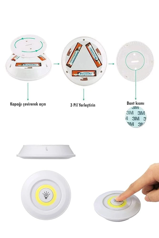 • بالضغط اليدوي: اضغط على مركز اللمبة لتشغيلها أو إطفائها.