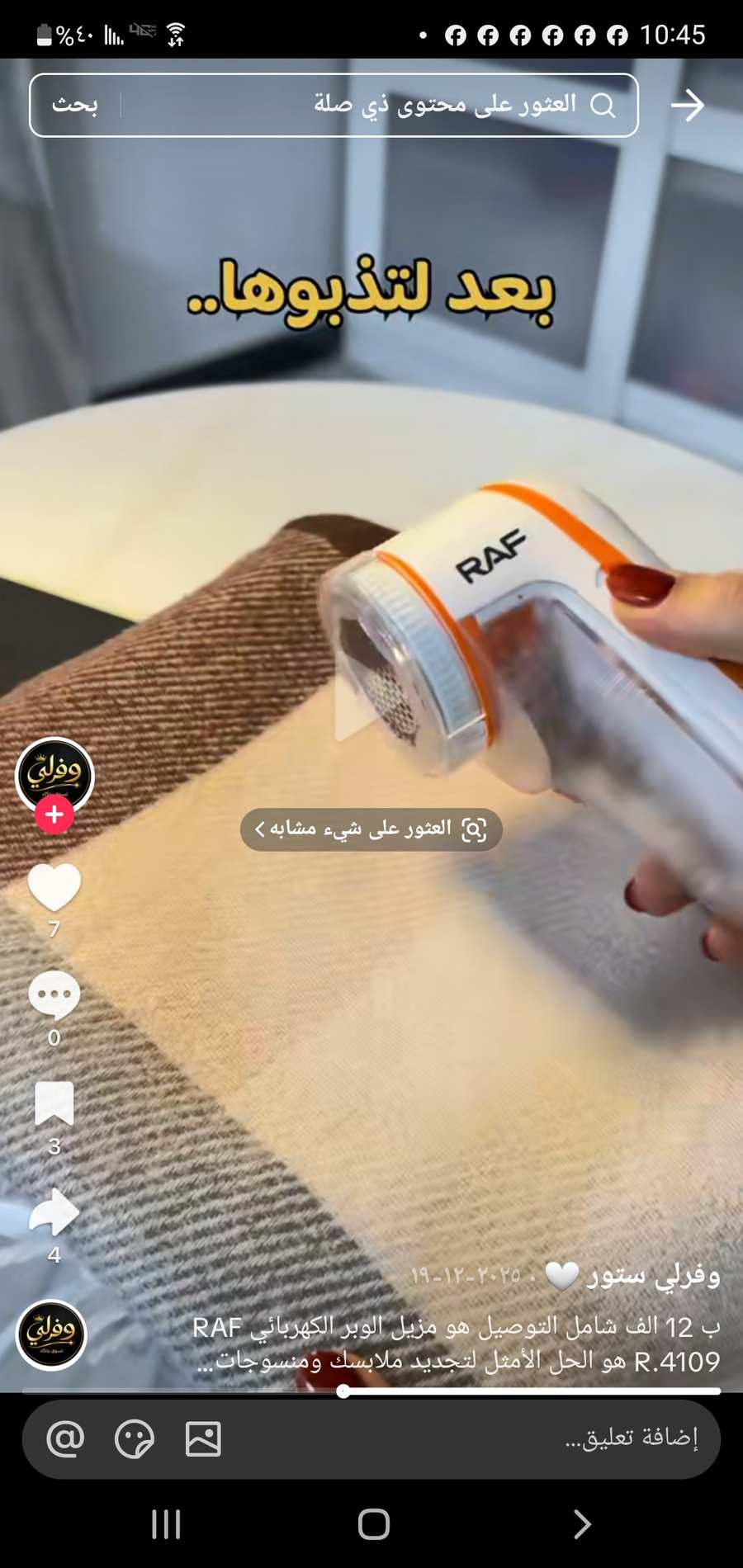 إزالة فعّالة للوبر والكُرات من الملابس والأقمشة المختلفة