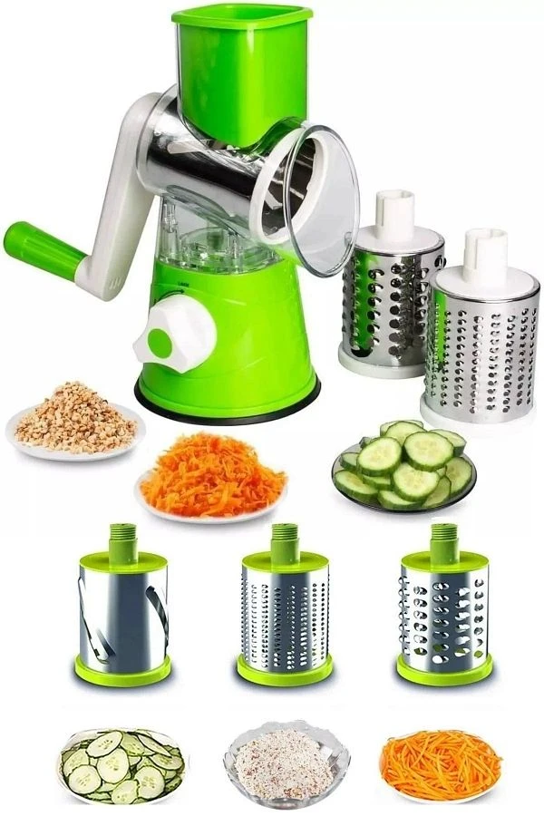 • قم بتدوير المقبض باليد، وسيخرج المنتج المبشور أو المقطع من الجانب.