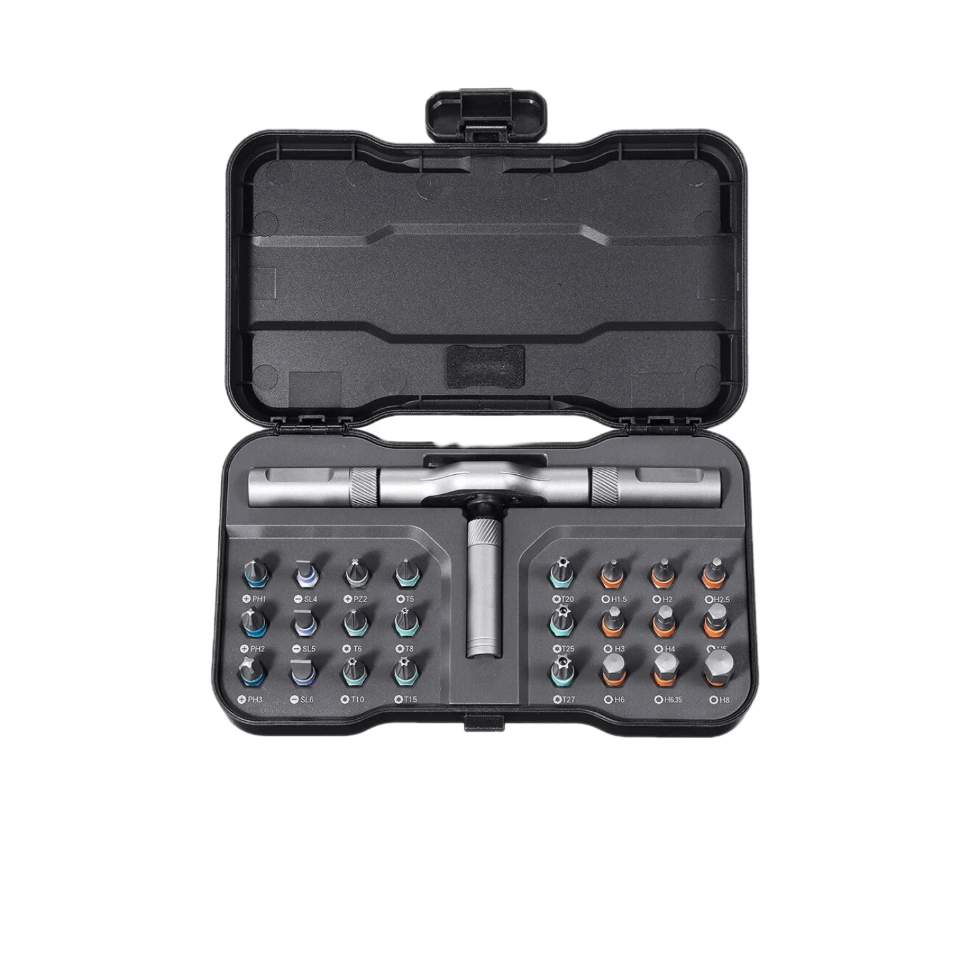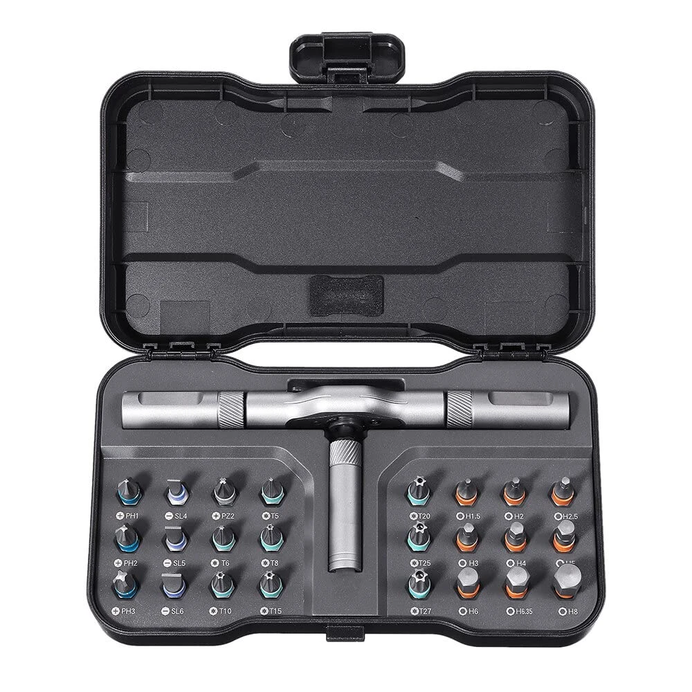 تصميم مقبض مريح: المقبض مصمم بشكل يتيح استخدامه كـ مفك تقليدي أو تحويله لنمط "T-Handle" لزيادة قوة العزم (Torque) عند التعامل مع البراغي الصلبة.