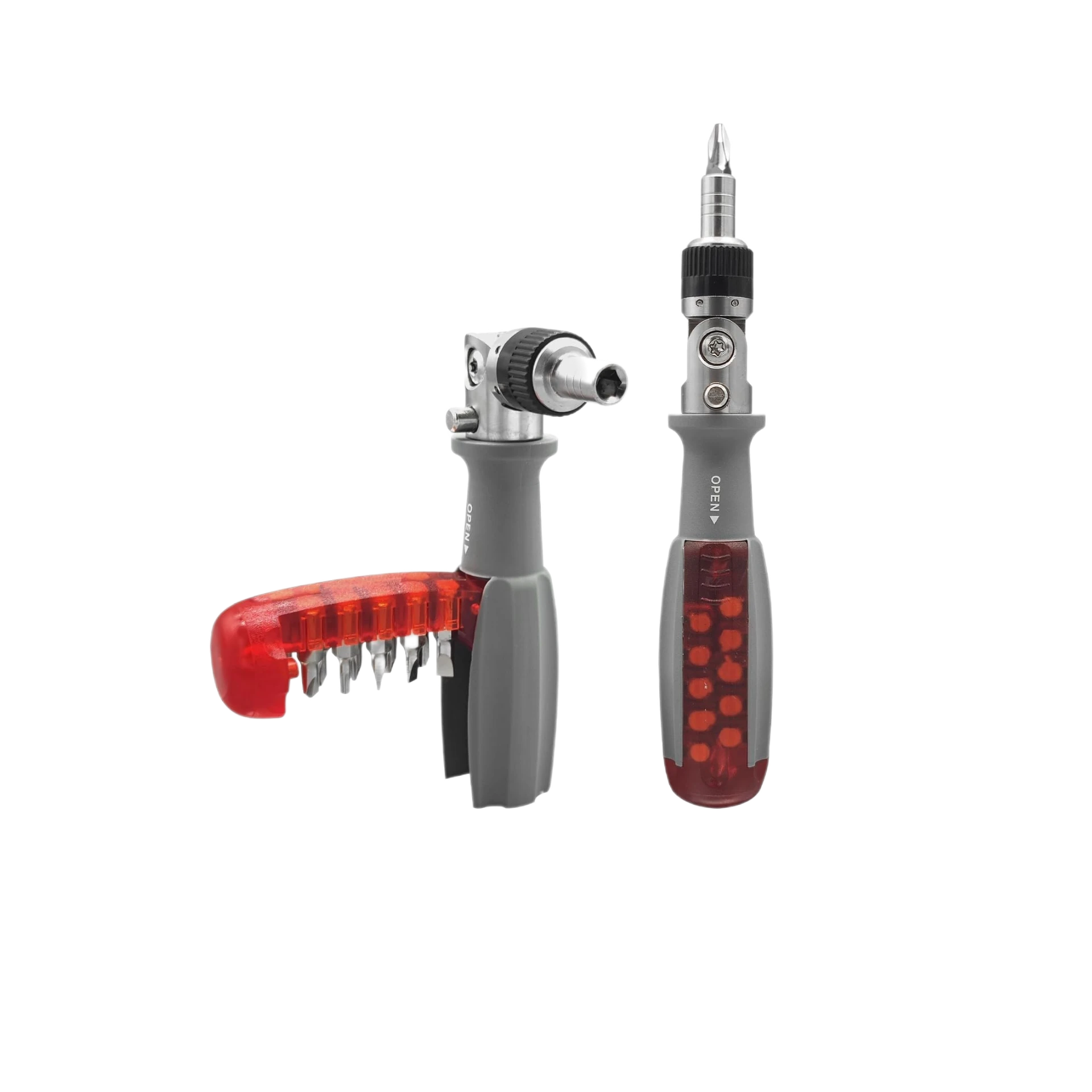 • عدد رؤوس المفك: عدة رؤوس مختلفة (كما هو موضح في الصورة)