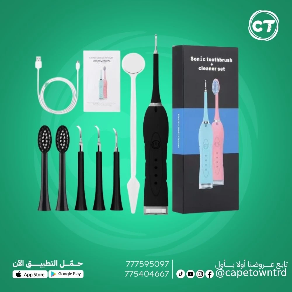 - نظام عناية شامل: مجموعة متكاملة توفر لك فرشاة أسنان سونيك، جهاز إزالة الجير، رؤوس تنظيف متعددة، ومرآة فم، لتغطية جميع جوانب نظافة الفم والأسنان.