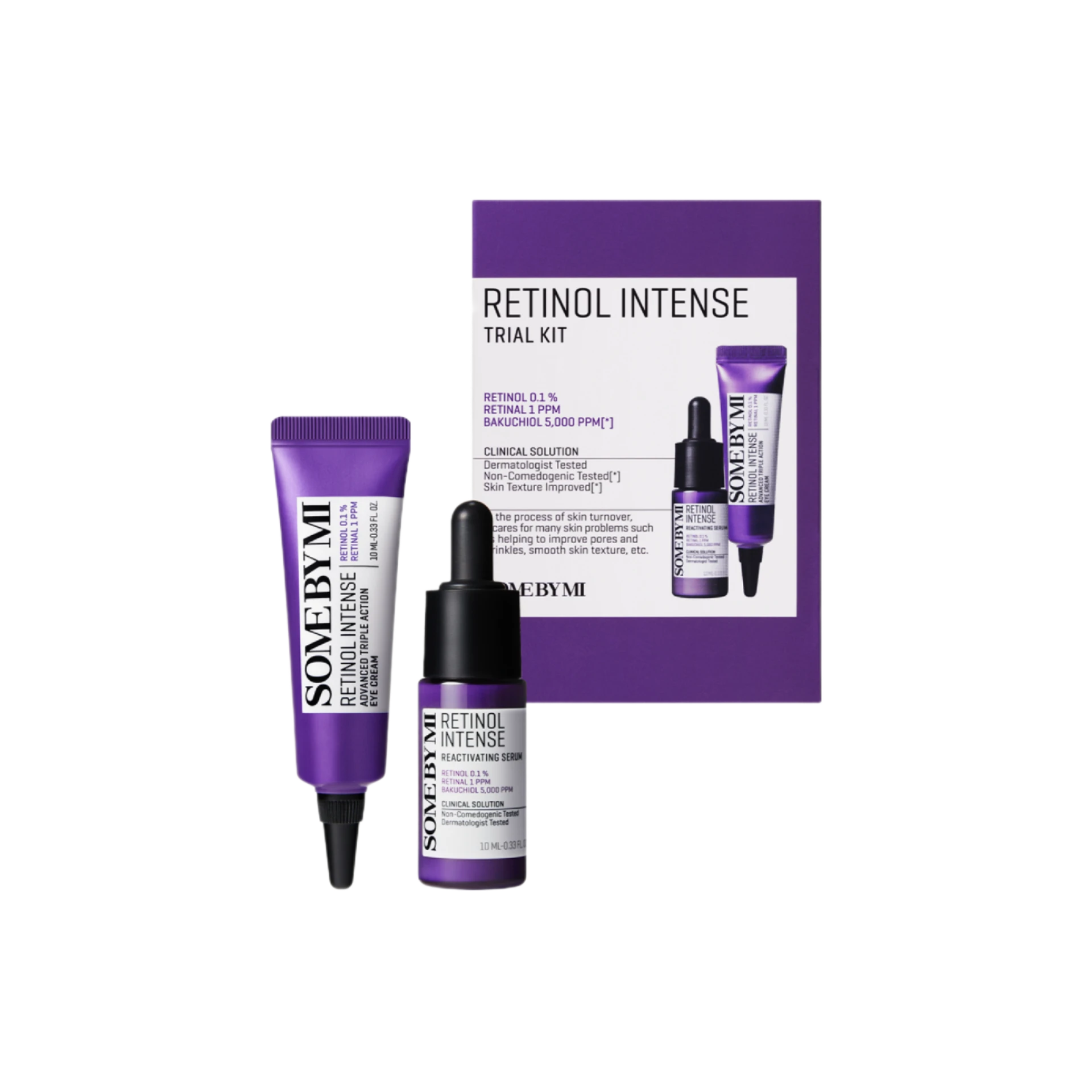 مجموعة Retinol Intense من Some By Mi تمنحك روتينًا علاجيًا متكاملًا لتجديد البشرة بفضل مزيج الريتينول والباكوشيول، مع تركيبة لطيفة تناسب حتى البشرة الحساسة.