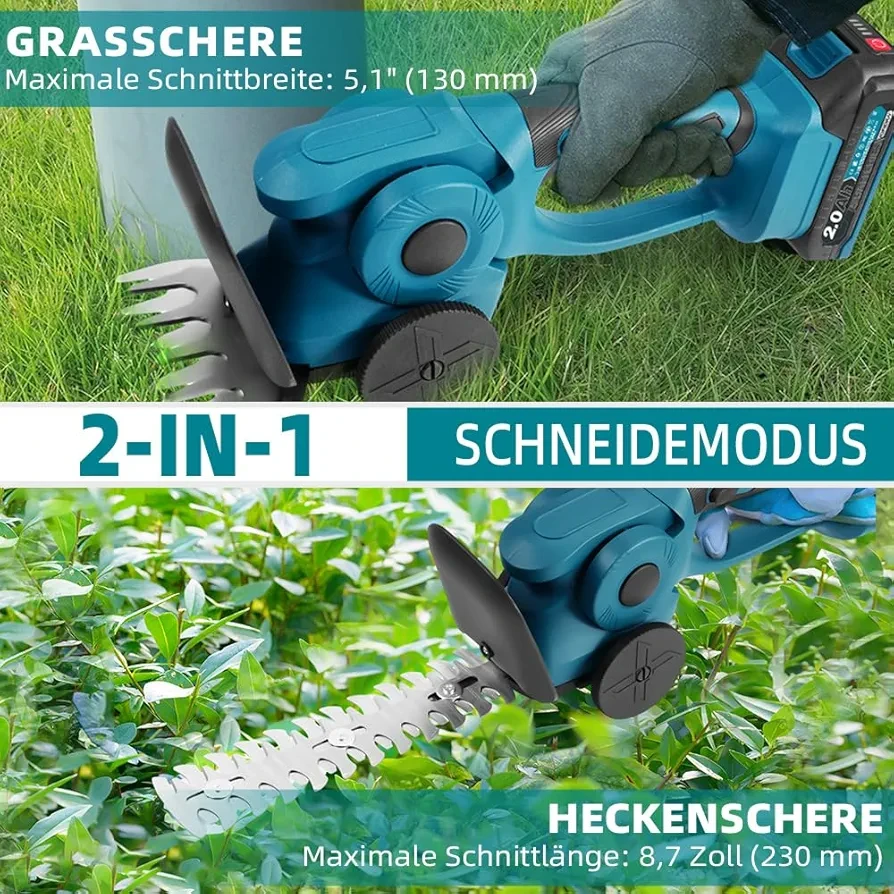 مقص عشـب وحديقة كهربائي محمول بالبطارية – قابل للتبديل بين شفرة العشب وشفرة الأشجار الصغيرة