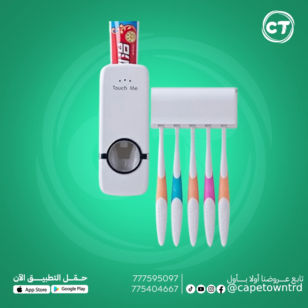 المكونات: قطعتين (وحدة موزع المعجون، ووحدة حامل الفرش التي تتسع لـ 5 فرش).