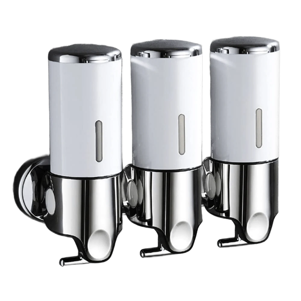 • املأ كل خزان بالسائل الذي ترغب فيه (صابون سائل، شامبو، بلسم، إلخ).
