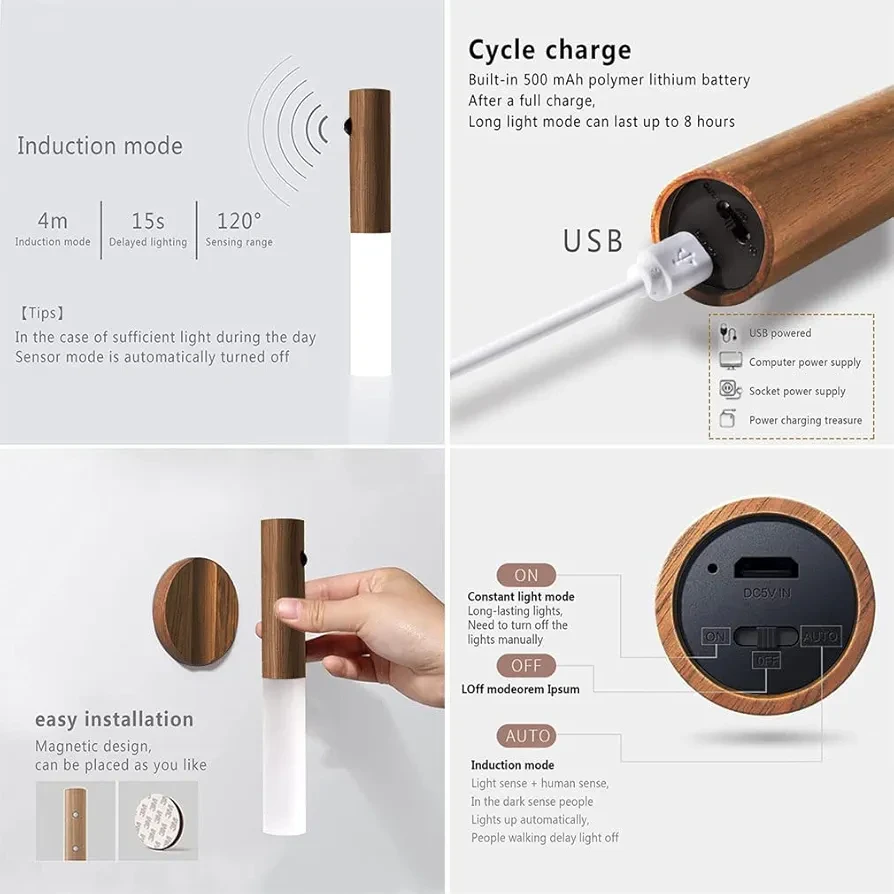 تركيب مغناطيسي سهل: لا يحتاج إلى حفر أو أسلاك؛ القاعدة تلتصق بالسطح عبر لاصق 3M قوي، والمصباح يتصل بالقاعدة مغناطيسياً ليسهل فكه وإعادة تركيبه.
