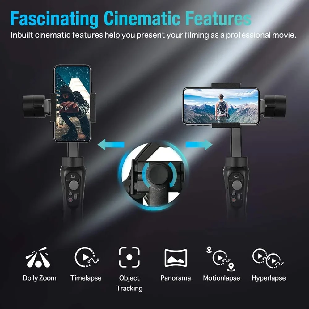 ✔️ تثبيت ثلاثي المحاور (3-Axis Stabilization): يمنع الاهتزاز ويعطي تصوير ناعم
