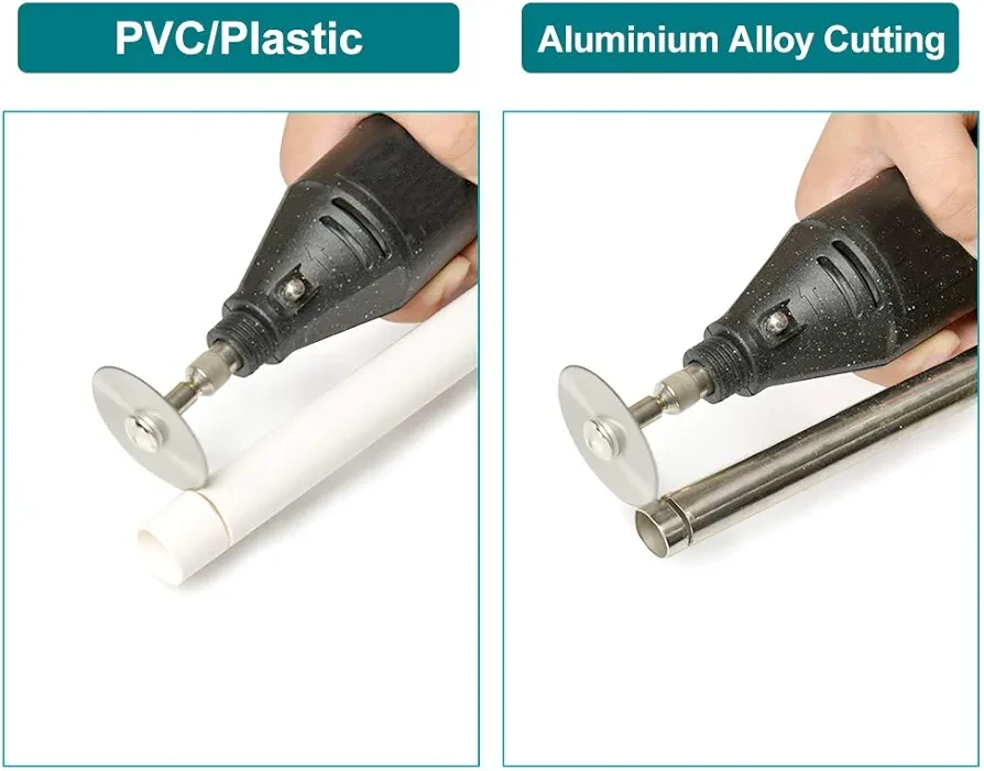 🪵 تقطع الخشب، البلاستيك، PVC، وبعض المعادن الخفيفة.