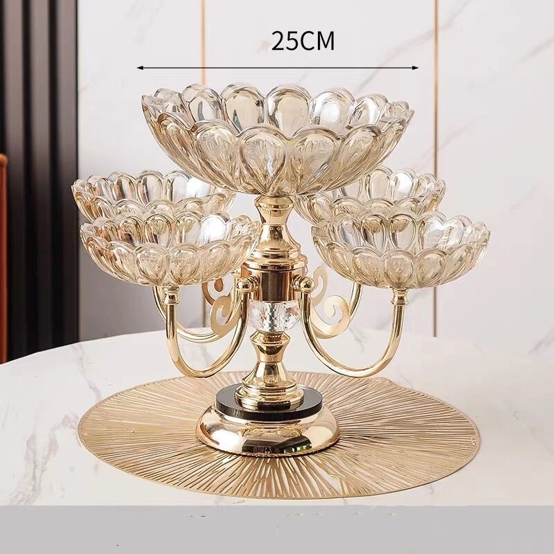 اضف لمسة من الفخامة والرقي إلى ضيافتك مع شيالة التقديم ذات التصميم الأخّاذ. هذه القطعة الفنية ليست مجرد أداة لتقديم الحلويات والمكسرات، بل هي تحفة مركزية تزين طاولتك وتعكس ذوقك الرفيع في فن التقديم. بتصميمها المتعدد الأدوار الذي يجمع بين اللون الذهبي اللامع وبريق الكريستال، تعتبر الخيار الأمثل لتقديم تشكيلة منوعة من أشهى المأكولات في المناسبات الخاصة، الأعياد، والتجمعات العائلية.