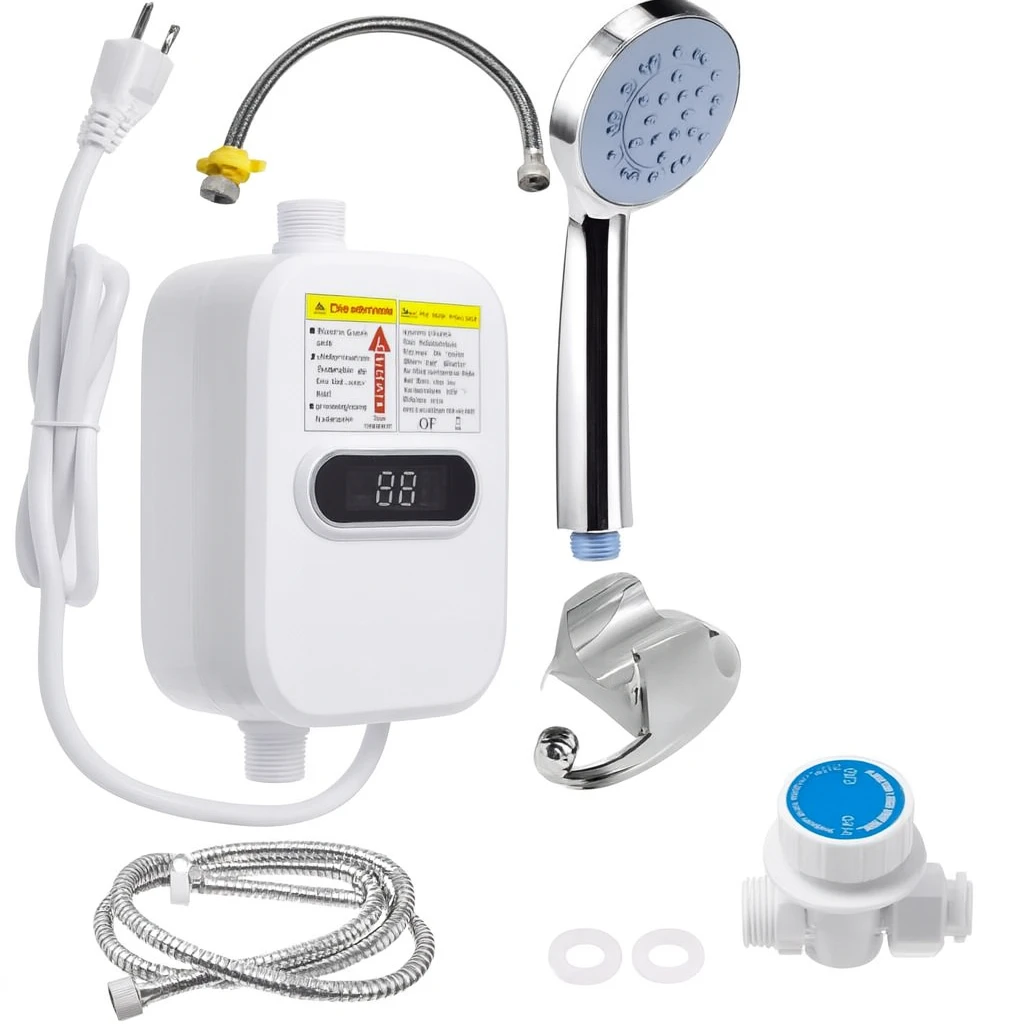 سخان ماء فوري كهربائي للدُش – صغير الحجم مع شاشة رقمية وخرطوم ودش يدوي