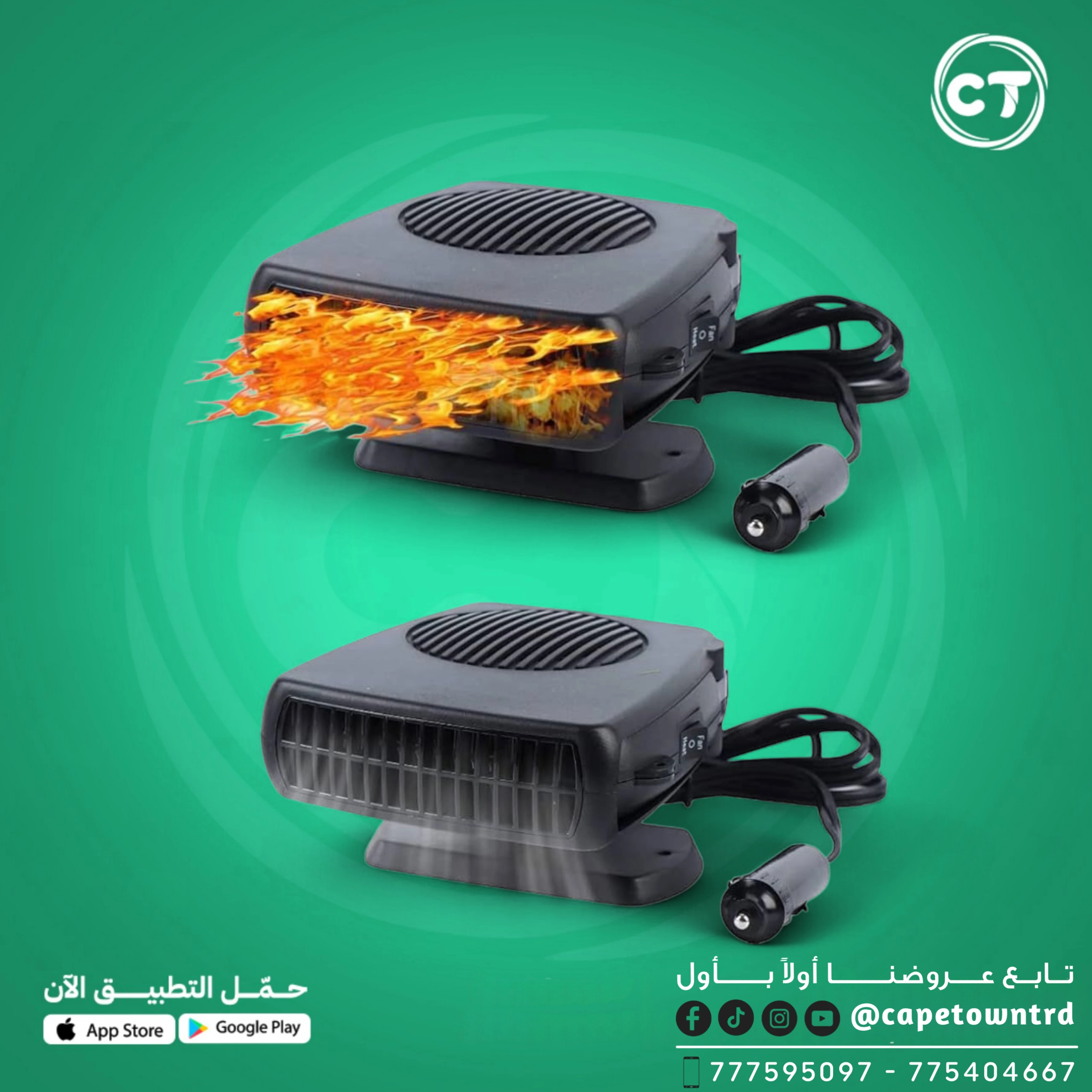 تصميم مدمج وسهل الاستخدام مع مفتاح واحد للتبديل بين السخان والمروحة