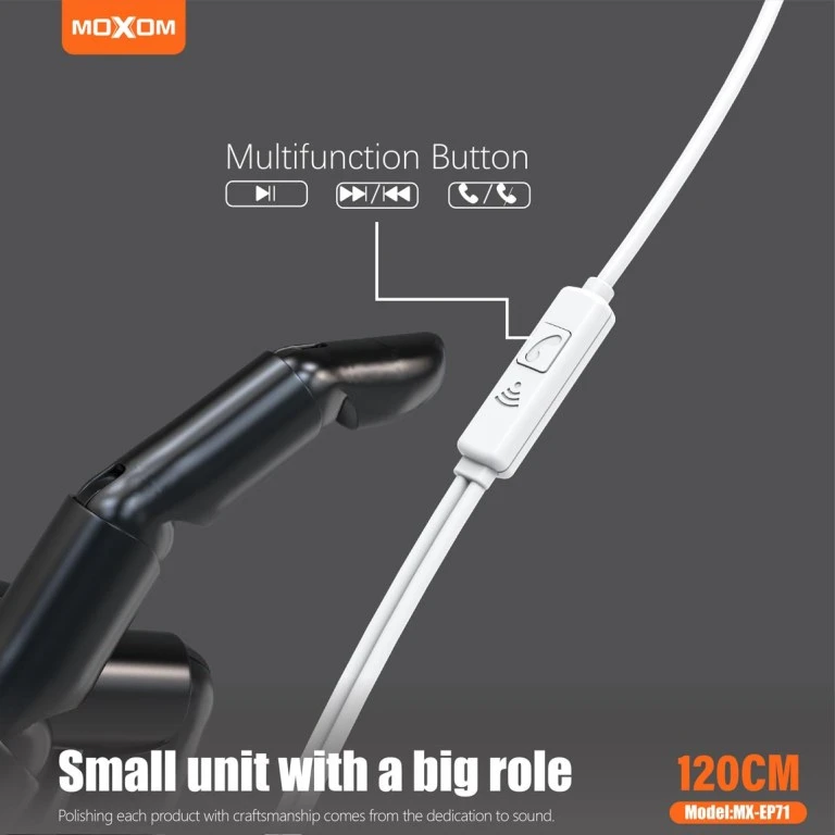 تجمع سماعة MX-EP71 من شركة MOXOM بين الأداء الصوتي العالي والراحة المثالية، فهي مصممة خصيصاً لتناسب نمط حياتك اليومي، سواء كنت تجري مكالمات عمل أو تستمتع بموسيقاك المفضلة.