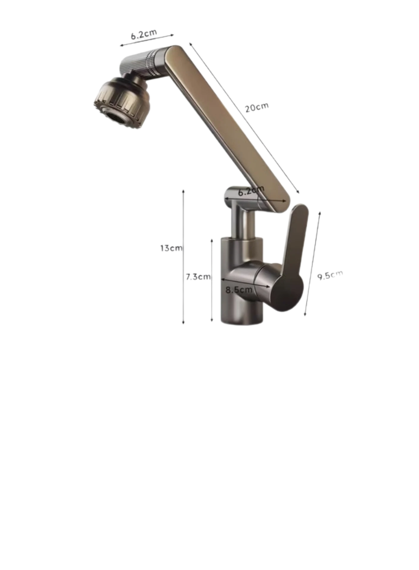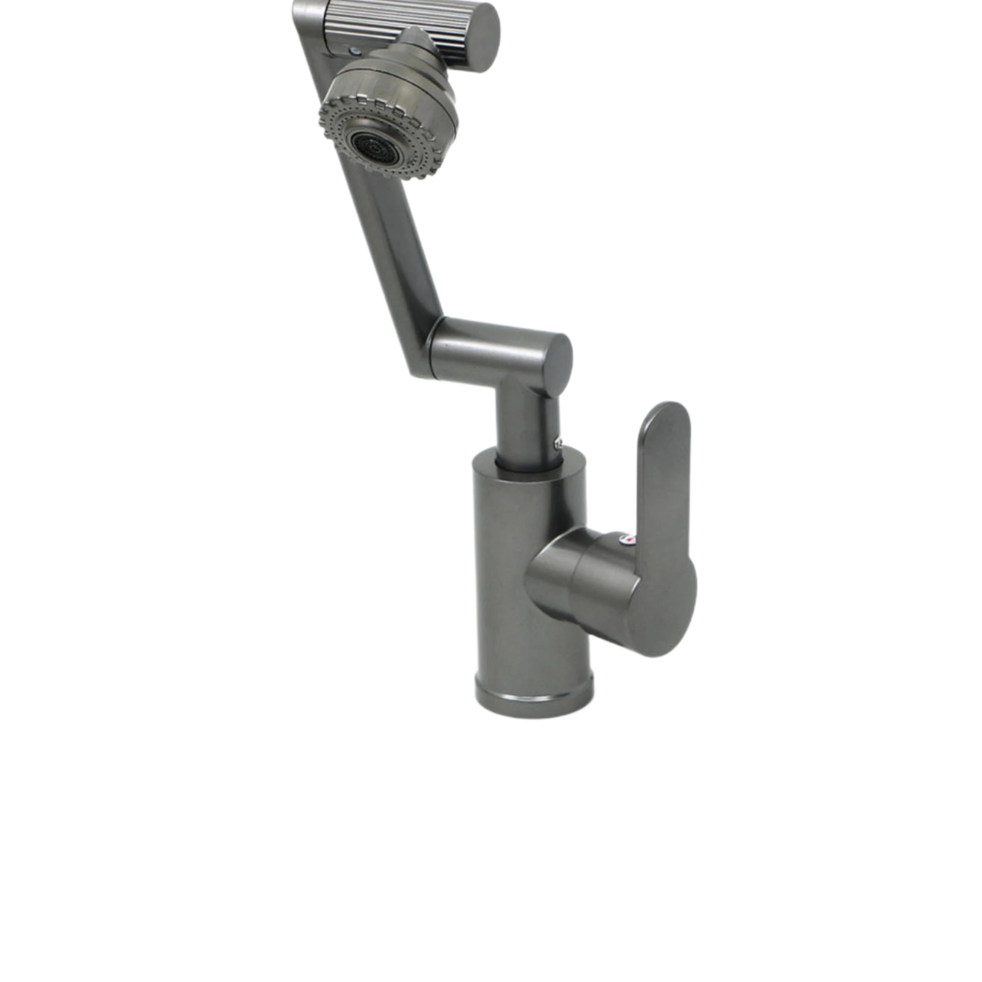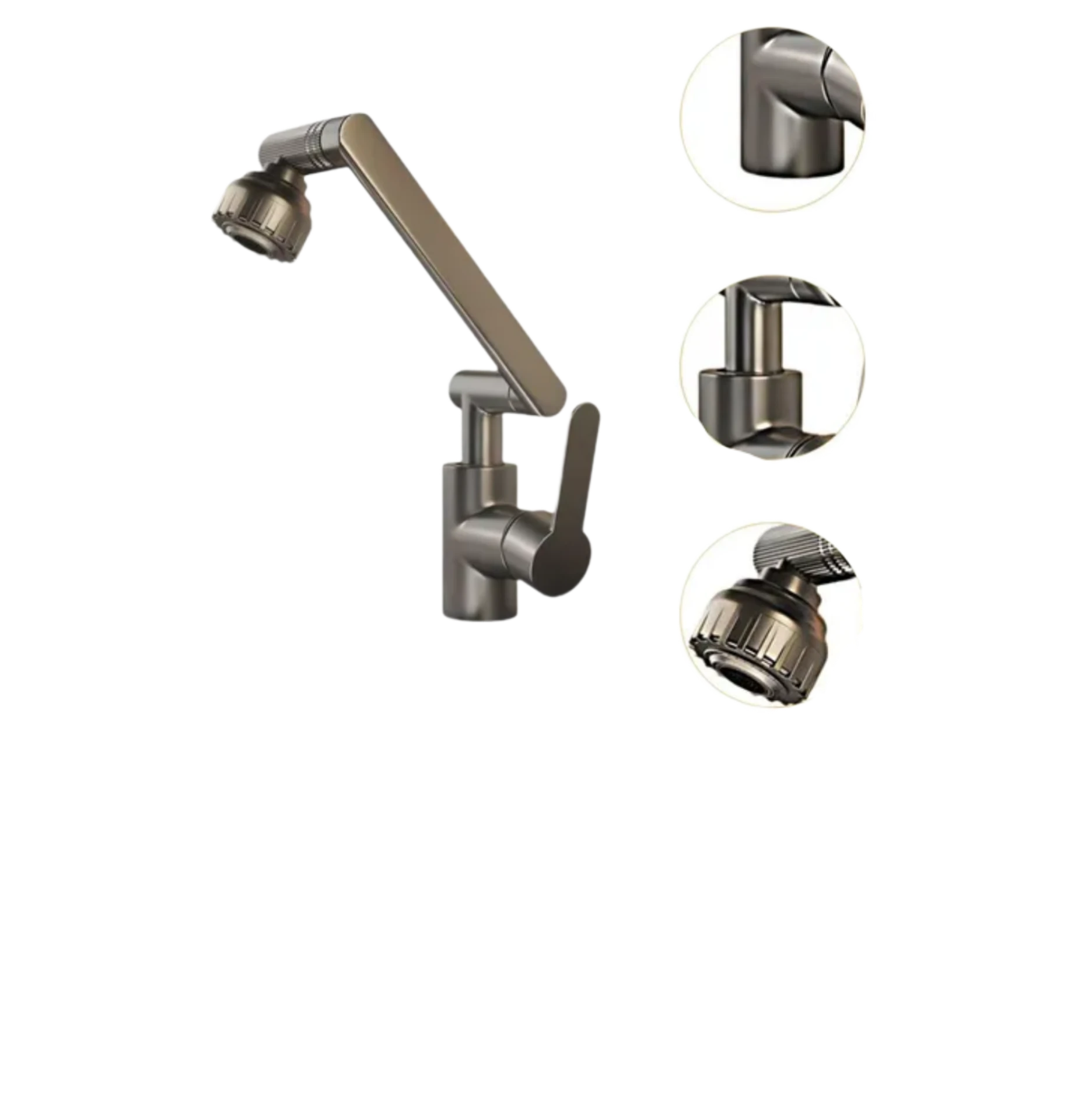 هذا الصنبور المبتكر مصمم ليوفر مرونة مطلقة في الاستخدام بفضل "الذراع الآلي" المكون من مفاصل متعددة تسمح بتوجيه تدفق المياه إلى أي زاوية في الحوض. يجمع بين التصميم العصري والعملية، مما يجعله مثالياً لغسل الأواني الكبيرة، تنظيف الحوض، أو حتى الاستخدام في المغاسل لتسهيل غسل الوجه والشعر.