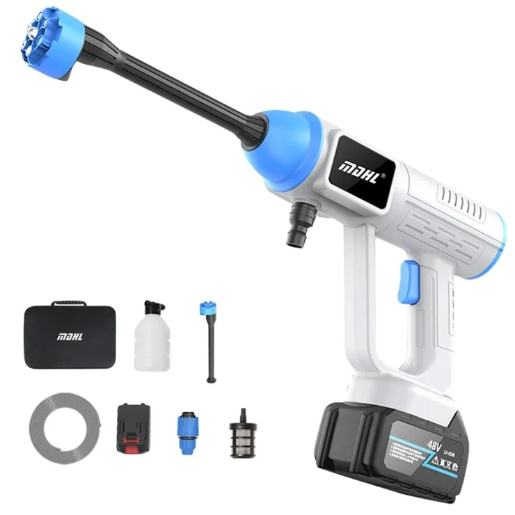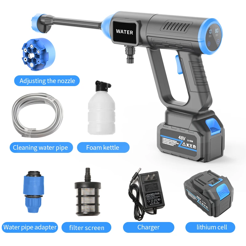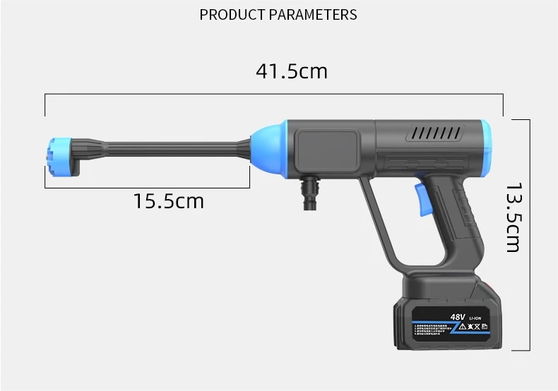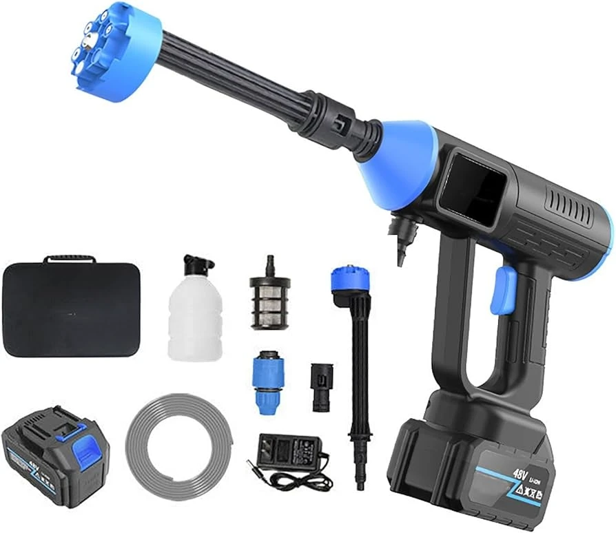 جهاز تنظيف محمول يعمل بالبطارية، مصمم لتوفير ضغط مياه قوي لغسل السيارات، الدراجات، والساحات الخارجية دون الحاجة للتوصيل بمصدر مياه ثابت أو كهرباء. يعتمد الجهاز على تقنية السحب الذاتي للمياه من الدلاء أو الخزانات، مما يجعله مثاليًا للاستخدام في الأماكن البعيدة.حرية الحركة: يعمل لاسلكياً بالكامل بفضل بطارية الليثيوم 48 فولت، مما يلغي عناء الأسلاك المتشابكة.