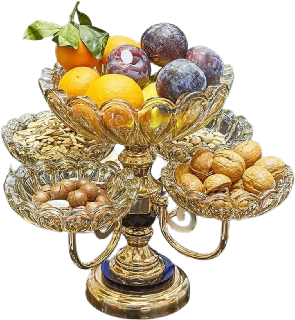 • الحجم: متوسط إلى كبير، مناسب لتقديم كمية متنوعة من الفواكه والمكسرات والحلويات.