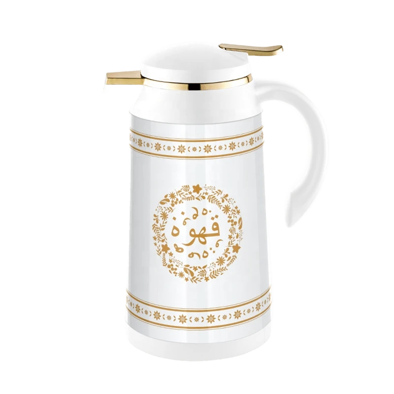تصميم يجمع بين الأصالة والعصرية: حافظ على تراث الضيافة العربية الأصيلة مع هذه الدلة العصرية. تتميز بنقوش ذهبية رائعة وكلمة "قهوة" بالخط العربي، لتكون قطعة فنية تزين جلساتك وتليق بضيوفك.