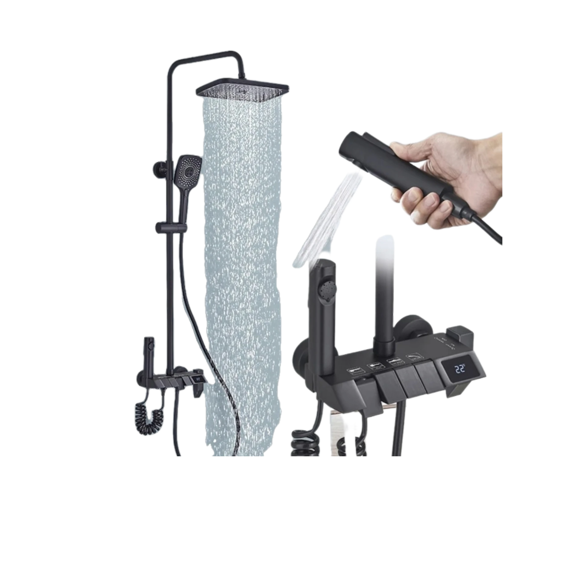 🚿 طقم دش استحمام فاخر من الألمنيوم الفضائي – تصميم عصري باللون الأسود