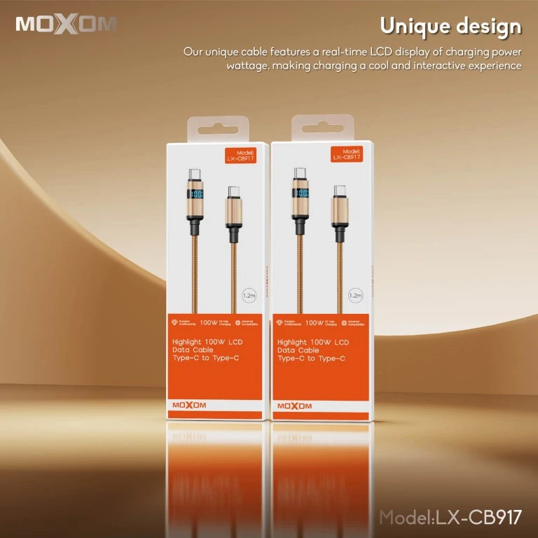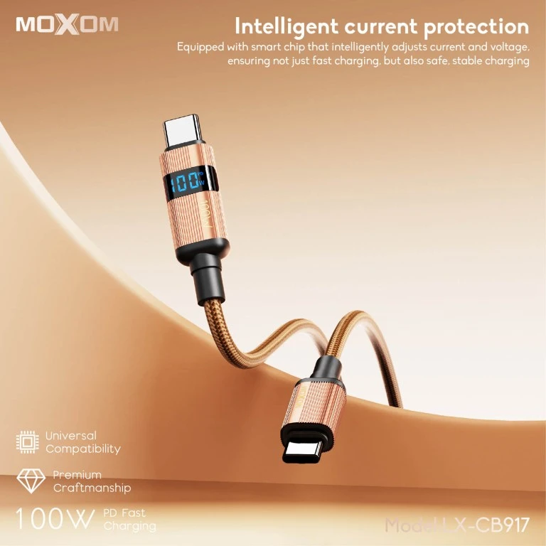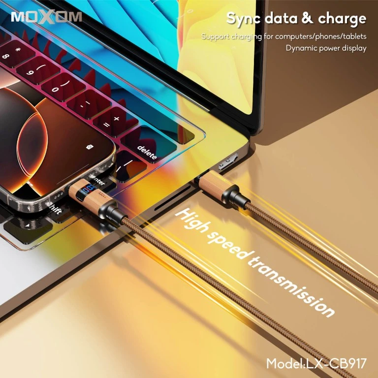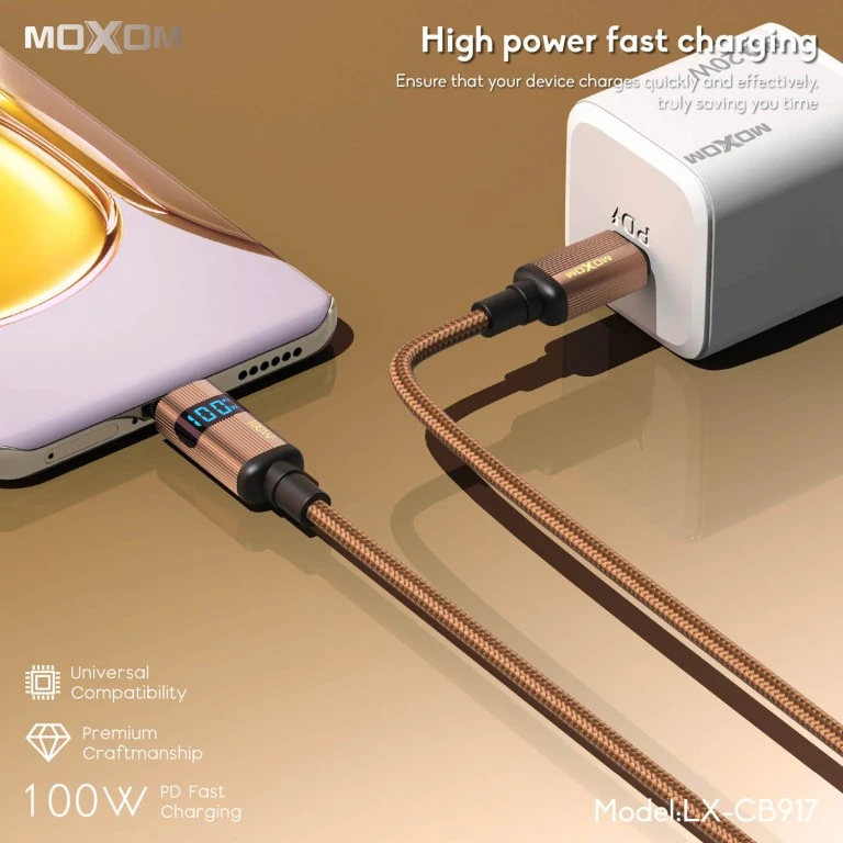 كابل البيانات MOXOM LX-CB917 - قوة 100 واط مع شاشة عرض ذكية