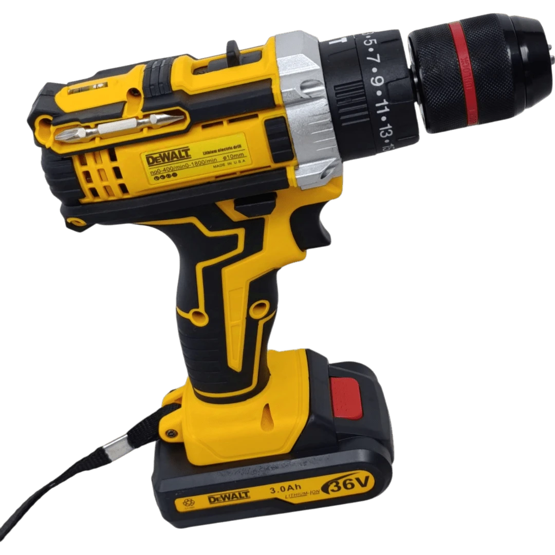 الملحقات: ريش حفر متعددة، رؤوس مفكات، وصلات، شاحن، بطارية