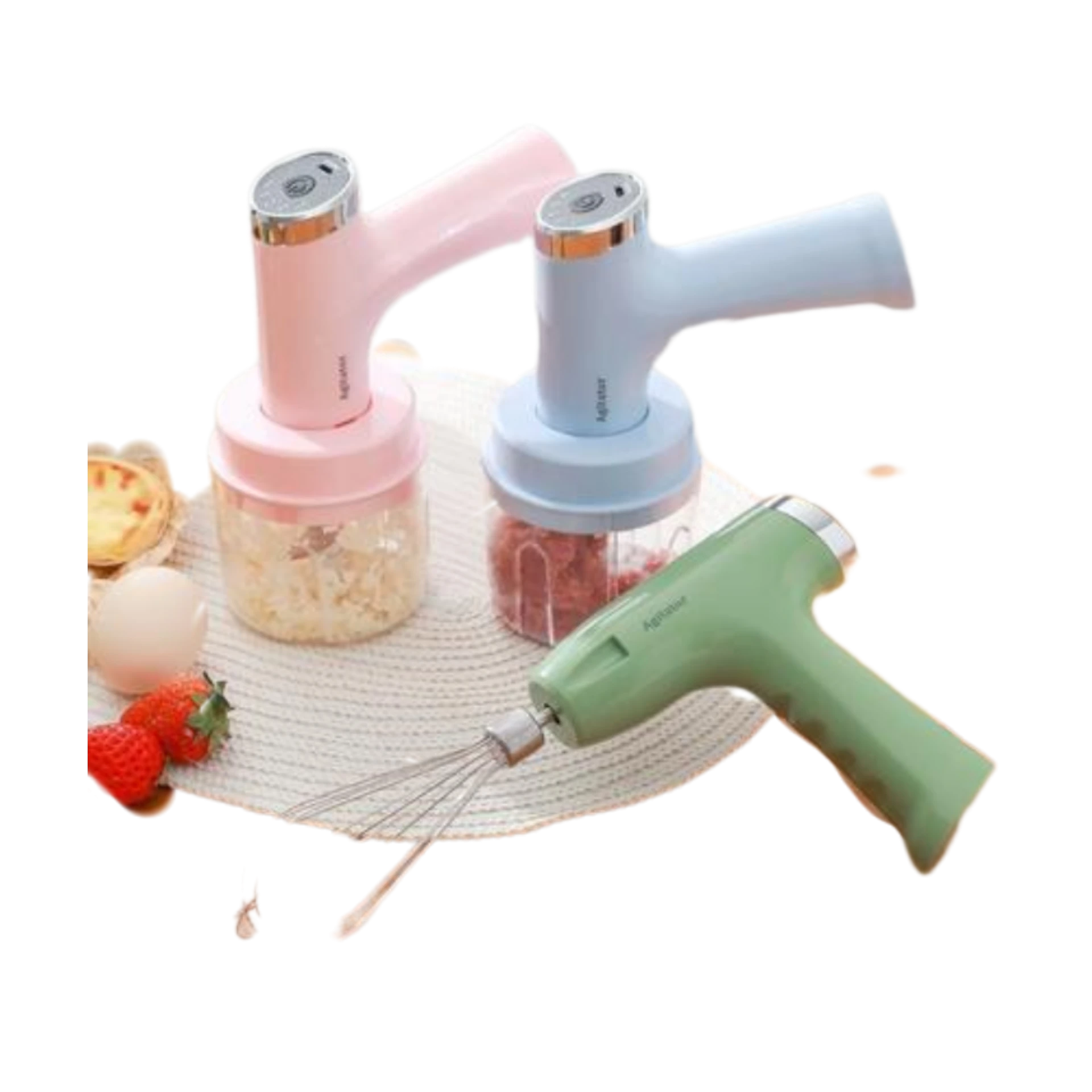 المادة: بلاستيك عالي الجودة (BPA Free) مع شفرات ومضارب من الفولاذ المقاوم للصدأ (Stainless Steel).