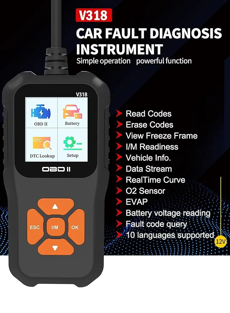 • الطاقة: يُغذى كهربائيًا من السيارة مباشرة عبر منفذ OBDII