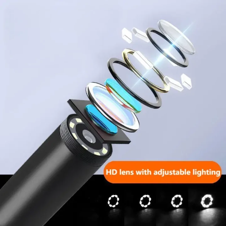 الكاميرا: عدسة دقيقة بقطر صغير (غالباً 5.5 مم أو 8 مم) للدخول في أضيق الأماكن.