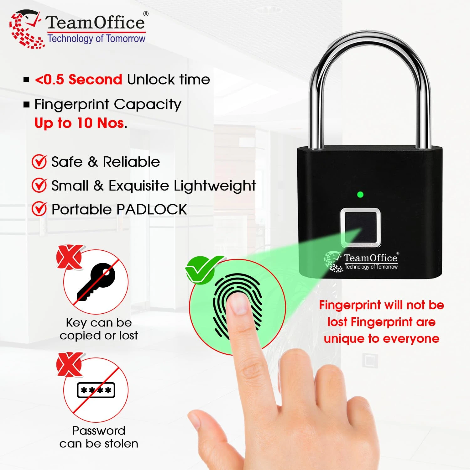 🔐 فتح سريع بالبصمة خلال ثواني بدون مفتاح