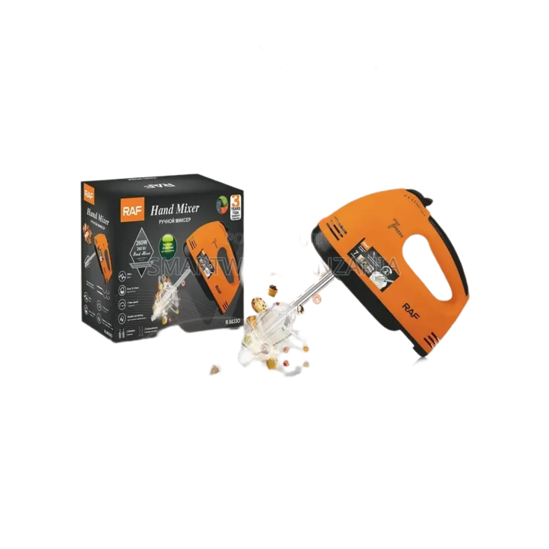 جهاز الخلط اليدوي من شركة RAF هو أداة لا غنى عنها لتحضير الحلويات والمخبوزات. يأتي المحرك بقوة 260 واط ليوفر طاقة كافية للتعامل مع مختلف القوامات، بدءاً من خفق الكريمة الخفيفة وصولاً إلى خلط العجين المتماسك. يتميز بنظام تحكم ذكي يحتوي على 7 مستويات للسرعة، مما يتيح لك الدقة في اختيار القوة المناسبة لكل وصفة. الهيكل الخارجي مصنوع من بلاستيك مقوى عالي الجودة، مع أزرار تحكم سهلة الوصول لفك الملحقات أو تغيير السرعات بضغطة واحدة.