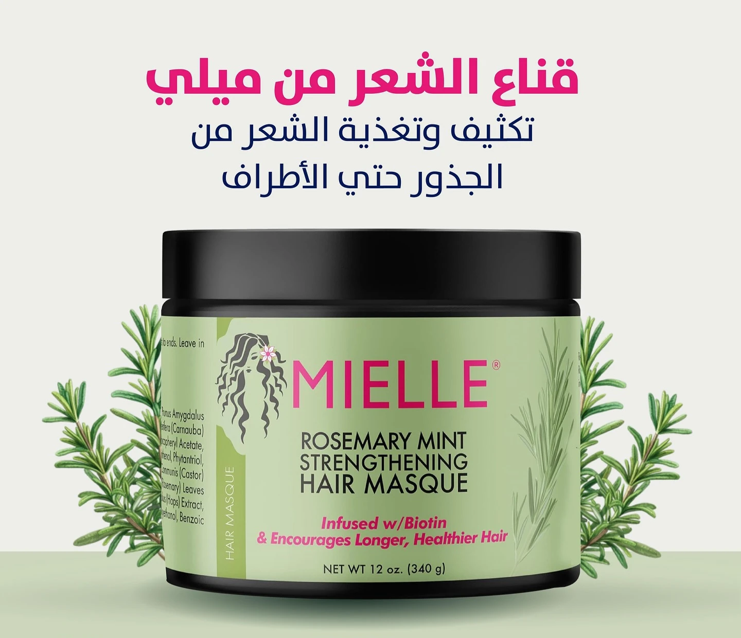 ماسك Mielle هو الحل الطبيعي المثالي لشعر تالف أو ضعيف. غني بالروزماري، النعناع، البيوتين، وزبدة الشيا ليمنحك ترطيبًا مكثفًا، يقوي الخصلات، ويعيد اللمعان والمرونة لشعرك من أول استعمال.