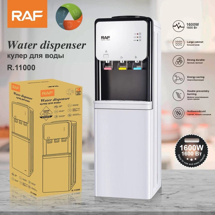 يعد مبرد المياه من شركة RAF موديل R.11000 الحل المثالي للمنازل والمكاتب، حيث يجمع بين التصميم العصري باللون الأسود والذهبي وبين الأداء القوي بقدرة 1600 واط لتوفير مياه (حارة، باردة، ومعتدلة) في ثوانٍ معدودة.
