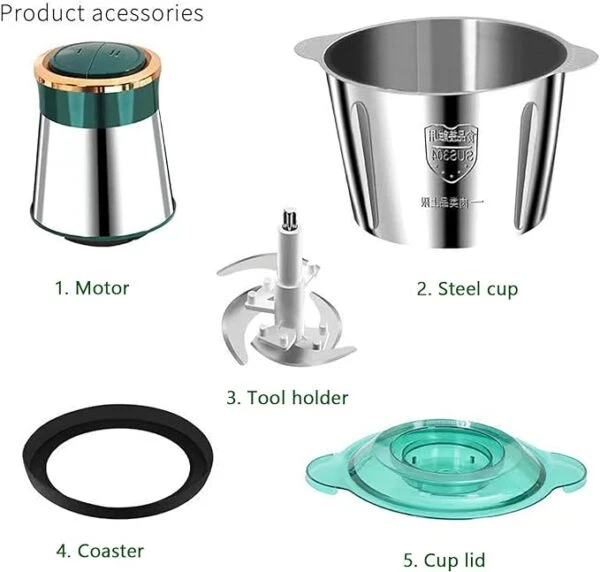 • متعدد الاستخدامات: يفرم اللحم، الخضار، الفواكه، البصل، الثوم، المكسرات، وحتى الثلج