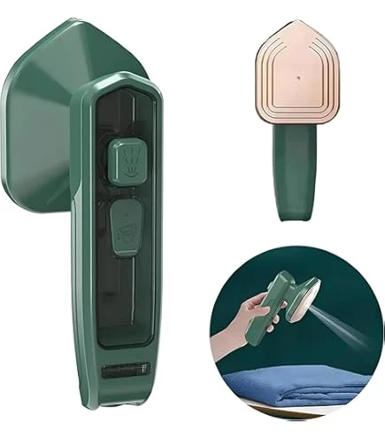 مكواة بخار صغيرة محمولة تُستخدم لكوي الملابس بالبخار، تعمل بسرعة وتناسب الاستخدام المنزلي أو أثناء السفر.